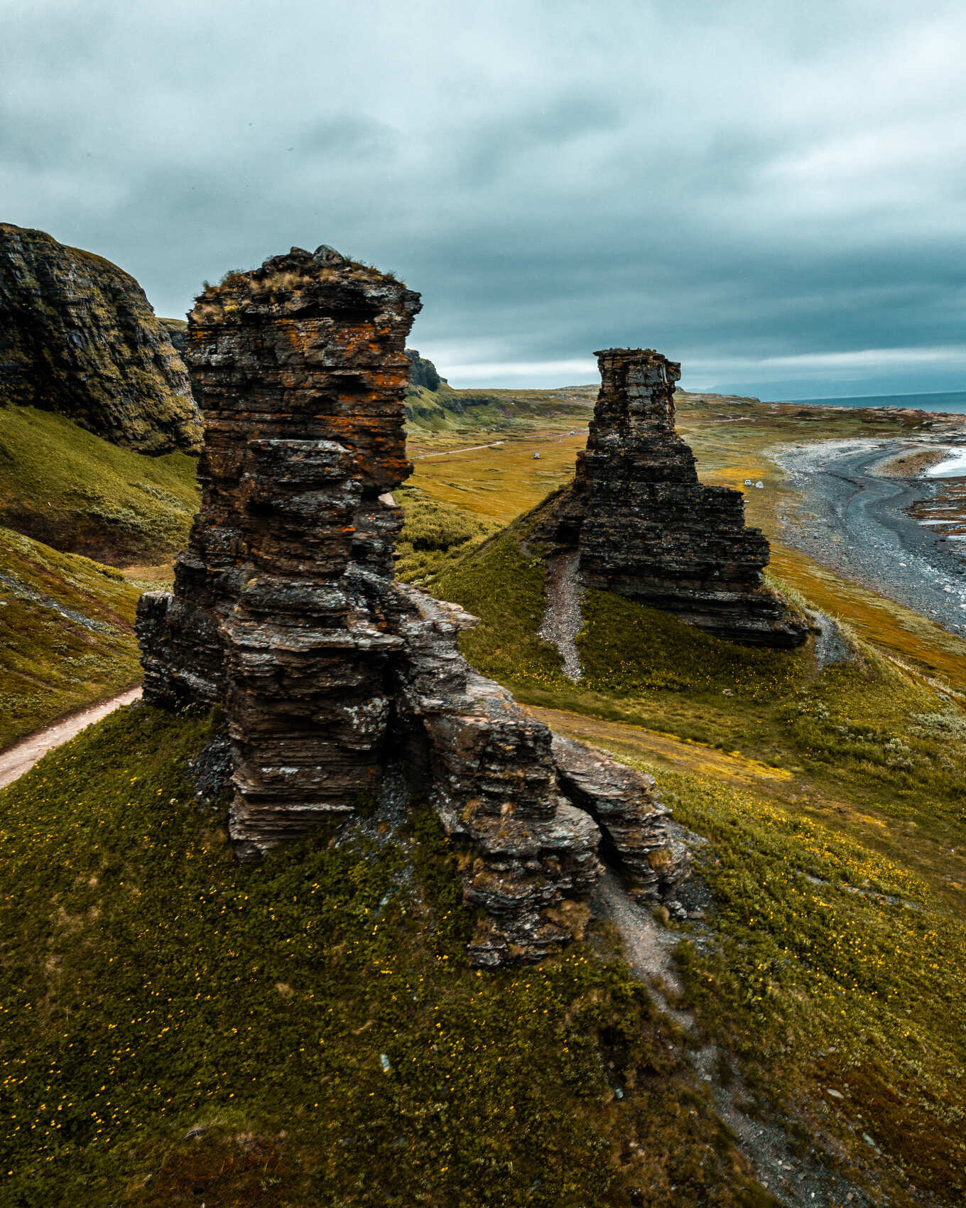 Мыс Кекурский выглядит действительно очень эпично. Фактически это сильно выделющийся на фоне остального рельефа хребет, уходящий под воды Баренцева моря. Можно иногда услышать, как это место называют Армагеддоном из-за сокрушительных осенних штормов, когда волны достигают верхушки прибрежного скального хребта.