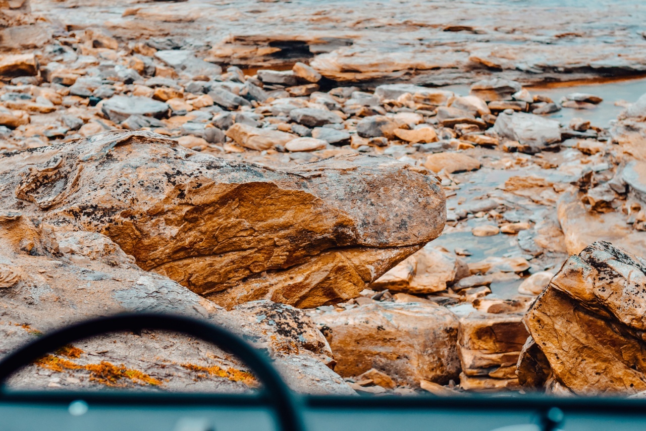 Пройдём вдоль скал к фантастическому месту — Берегу рыжих камней. Этот пляж протянулся на пару километров вдоль побережья на мысе Земляном. Миллионы лет природа с помощью воды и ветра создавала инопланетный пейзаж и причудливые фигуры, похожие на животных и сказочных персонажей.